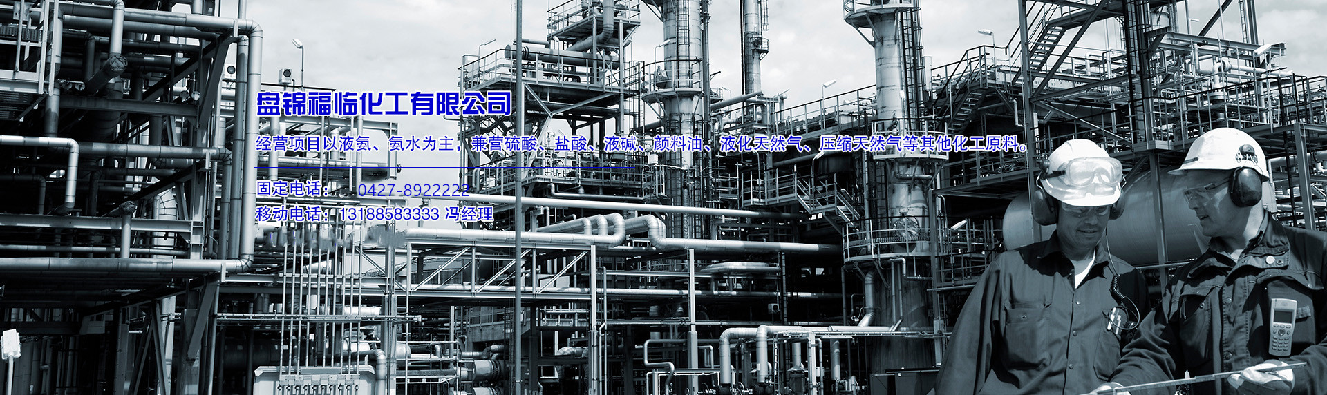 盤錦福臨化工有限公司,成立于2011年5月份,經營項目以液氨、氨水為主,兼營硫酸、鹽酸、液堿、顏料油、液化天然氣、壓縮天然氣等其他化工原料。本公司是一家從事化學品經營的企業,現有職工20余人,專業技術人員3名。現有液氨槽車4臺。氨水車2臺。液氨鋼瓶30多個,產品暢銷遼寧省內外。